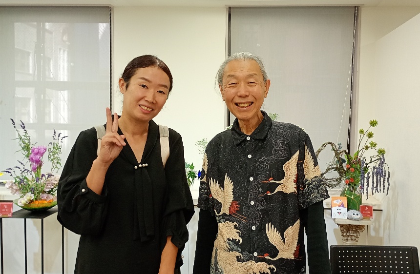 假屋崎省吾先生の銀座花教室の花展に行ってきました。草月流の大先輩ですが、お会いするのは初めて。独特の美意識をお持ちです。エンボス加工のポストカードにサインしていただき、写真も撮っていただきました。横浜市草月流いけばなアトリエ璃萌