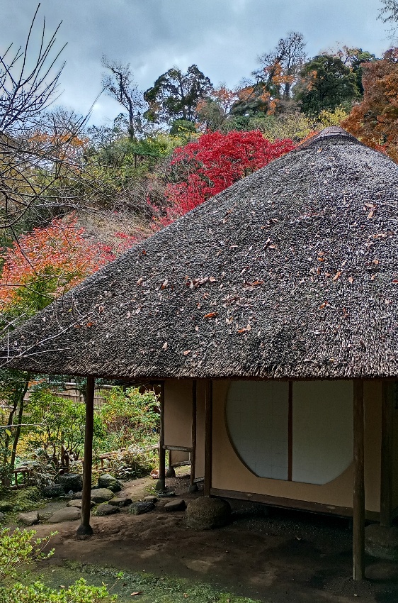 紅葉最盛期の北鎌倉の静かな山の中、自然光のみで障子薄明かりの元、聞こえるのはつくばい(手水)のチョロチョロ水の流れる音と、炉開きした茶釜がシュンシュン湯が沸く音のみ。