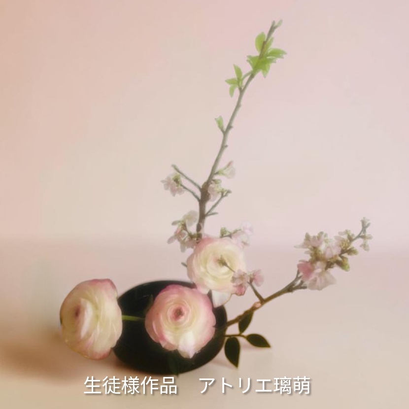 | LINE動画レッスン 24時間いつでも、どこでもOK | ■いけばな1単位2500円(花材費別) 花材と花器などは、ご自身でご準備ください。 講師のデモ動画(真上から、横から、1週間何度でも見放題)やご自身のいけこみ動画、花材の注意事項、作品の複数写真とレッスンノート確認、コメントのやりとりでレッスンを行います。返信に時間がかかる場合があります。 |